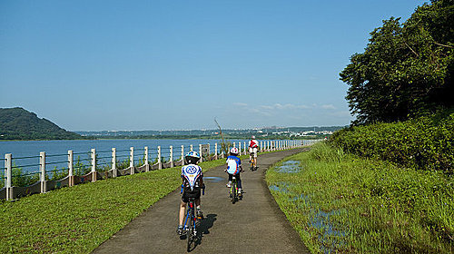 大溪河濱自行車道沿路風光明媚,氣氛融洽。