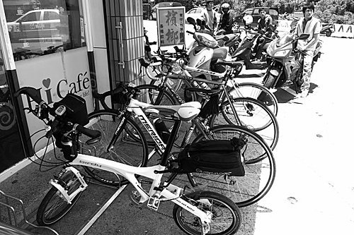 關西的午後,車水馬龍的118縣道與台3線路口,一家7-11裡頭並排坐著兩位單車騎士。