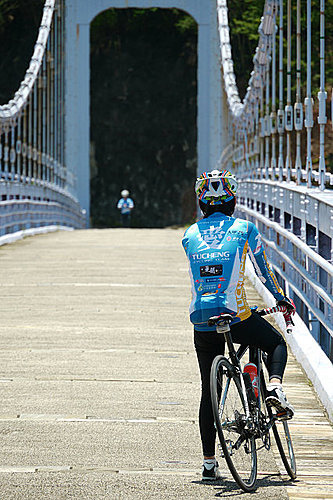 左邊那位,瘦瘦壯壯穿著車衣車褲,帥氣的風格,乍看像是電影鐵馬頑童的男主角「野野村輝」。