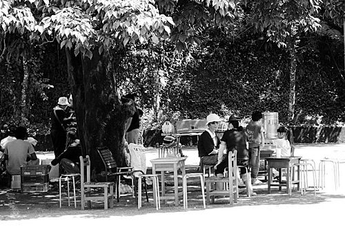 一邊喝咖啡,一邊篩選路上拍到的照片,屋簷下的氣氛倒是十分悠閒。