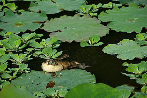 噗!是牛蛙,桐花公園出現牛蛙,如同黯然銷魂飯裡有令人噴淚的洋蔥般,令人費解。