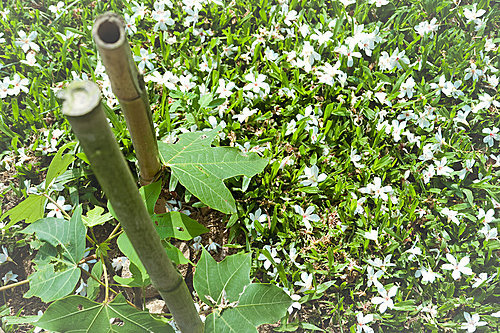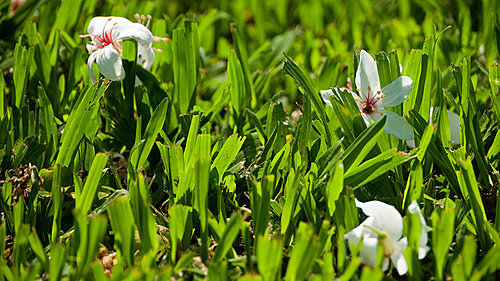 路上的花尚未遭踐踏,也未遭陽光曝曬,花況十分良好。