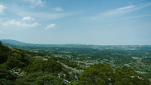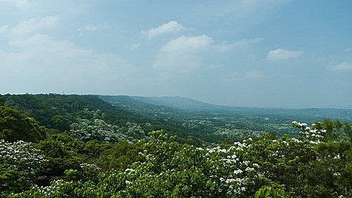 從虎頭坎一眼望去,呈現眼前的是一條桐花大道,舖成雪花般的長路,綿延至通霄。