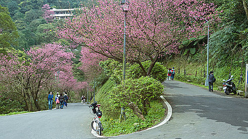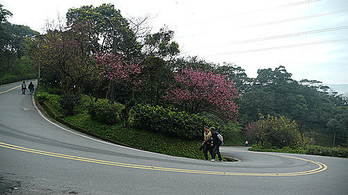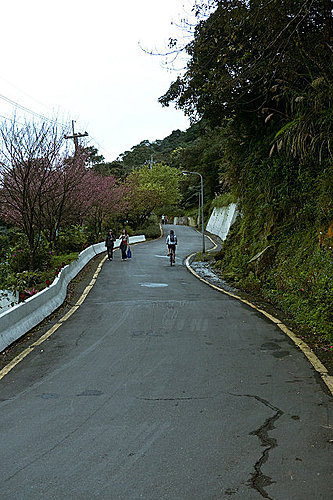 往大尖山的路標還挺好找的,騎到新台五路時,順著路標指示,再跟著人群走就能到達。