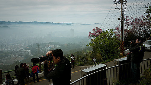 即便天氣不佳,太陽不露臉,仍是賞櫻遊客如織。