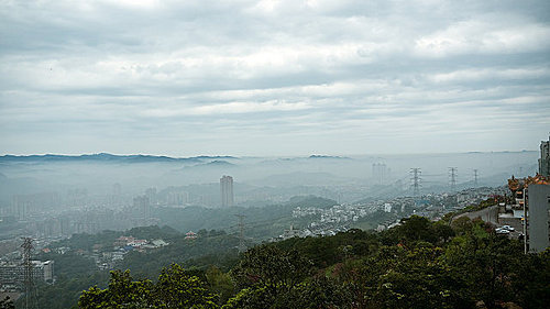 雖然濕冷沒陽光,但水氣重,反而使得群山雲霧繚繞。