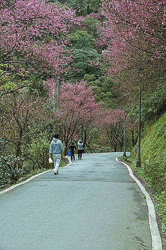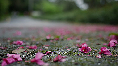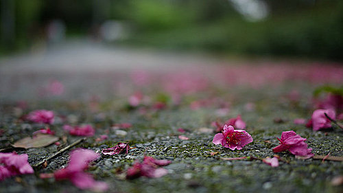 在落英繽紛的山道上,用自己的角度尋找焦點。