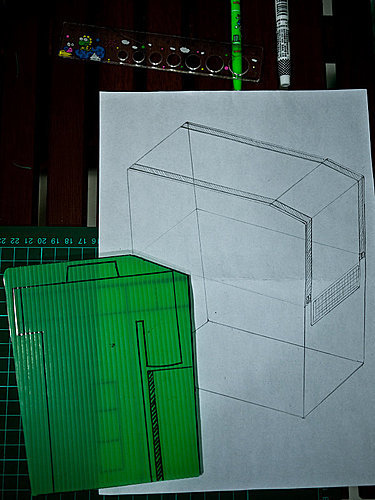 先來看看一開始掉漆的透視圖稿,其實就像香菸盒。