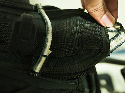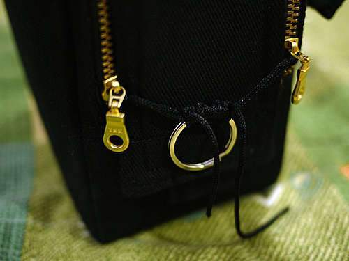 兩條拉鍊間的拉繩暫用鑰匙圈和中國結固定,更佳的方式仍待研究。