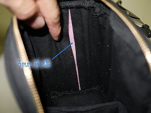 除了拉鍊位置沒成水平,它也沒隔層,雖然作了鋪綿防護性不差,但畢竟支撐性太低了。