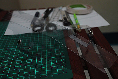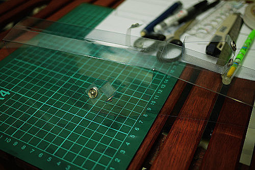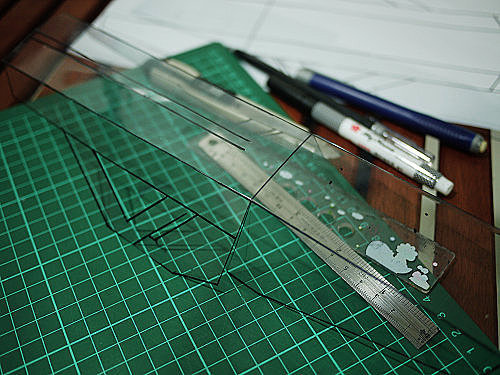 我先花一點時間,把切割線仔細量好畫在塑膠片上,然後再把塑膠片拿去「影印」。