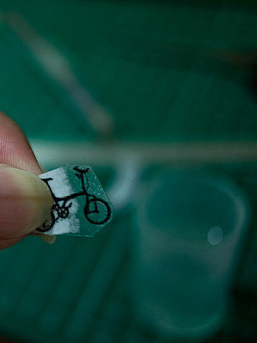 第五步:濕透後,用手指「輕輕地」戳掉白紙。(太用力圖案會被戳到糊掉)