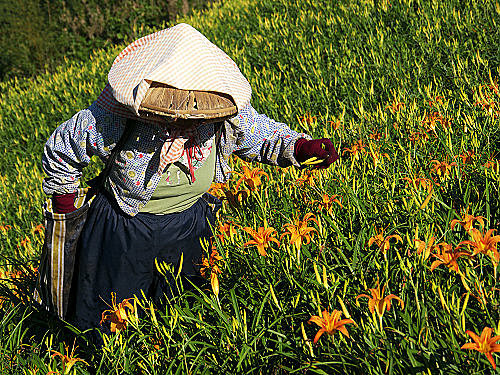 如果你看到少數幾朵綻放,那是前天來不及採收才讓它開了花。這是從採金針的阿桑那問來的。