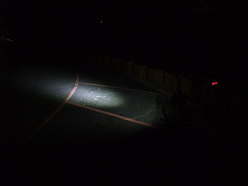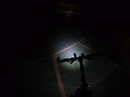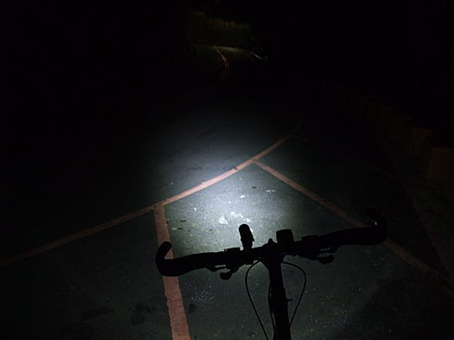 那天騎在工專路上,幾乎像是汽車開頭燈在跑,比槍燈的廣度還廣,只是照遠距離可能沒槍燈遠。